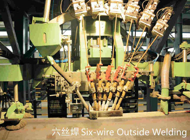焊管直徑φ508-φ1422mm,焊管長度8-12.5m,最高×120鋼級,當鋼級為×80時,最大壁厚為40mm;當屈服強度≤346MPa時,最大壁厚為60mm;年產直縫埋弧焊管可達40萬噸。主要用于陸地、海洋油氣、熱力、煤漿、礦漿等介質輸送,以及海洋平臺、電站、化工和城市建設結構等。