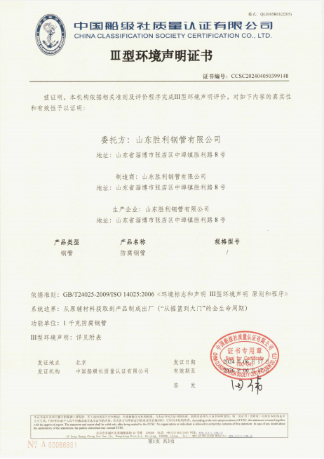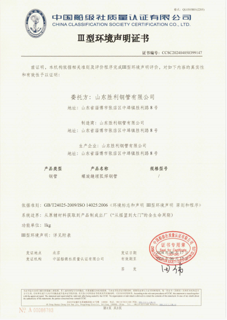 ? 2024年6月份,公司進行了螺旋縫埋弧焊接鋼管和防腐鋼管的碳足跡、Ⅲ型環境聲明評價工作。本次評價系統邊界均是 “從搖籃到大門”的全生命周期評價,即從原輔材料獲取到產品制成出廠全流程,6月中旬公司取得了碳足跡評價及環境聲明證書。本次評價更清晰的界定了公司產品生產過程中各個環節的碳足跡數據,在排除原材料因素帶來的影響外,公司需結合相應數據,探索進一步節能減排的可行性,同時本次評價為后續公司參與重要管線投標提供了有力的數據支撐。