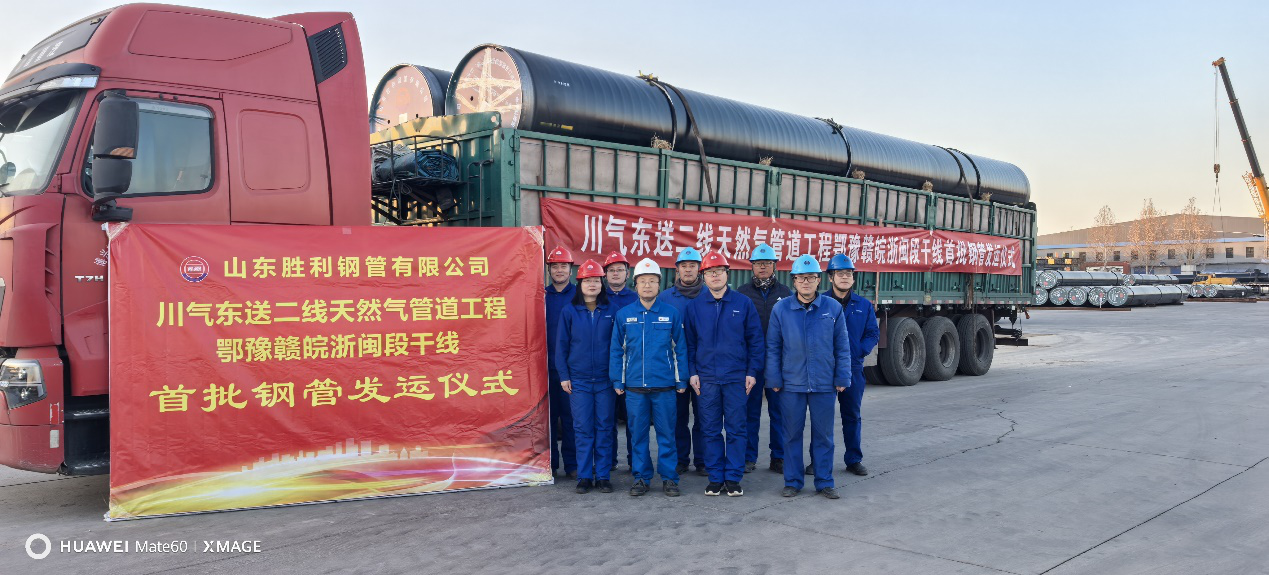 ?2024年12月21日、27日,由山東勝利和湖南勝利湘鋼鋼管承制的國家管網川氣東送二線天然氣管道工程項目首批埋弧焊接鋼管和直縫埋弧焊接鋼管相繼從生產廠順利裝車發運。