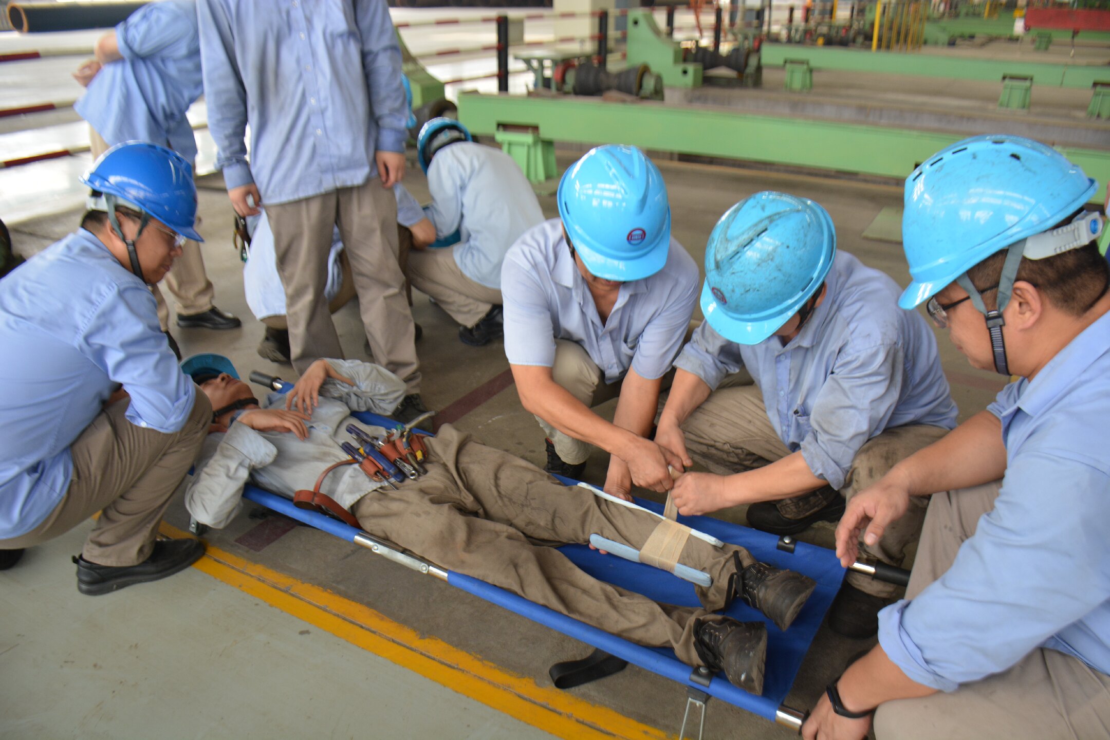 此次演練緊密結合分廠生產實際,模擬真實事故場景,全方位檢驗應急預案與現場處置的匹配度。演練前,此次演練總指揮管治軍帶領大家學習了《工貿企業重大事故隱患判定標準》,同時講解了此次事故演練的主要內容。隨著總指揮三聲哨響,演練正式開始。現場處置組、醫療救護組等各應急小組迅速響應,切斷設備電源,對傷員實施緊急救治并送醫,同時疏散周邊人員、封鎖現場,各環節緊密銜接,高效完成應急處置。
